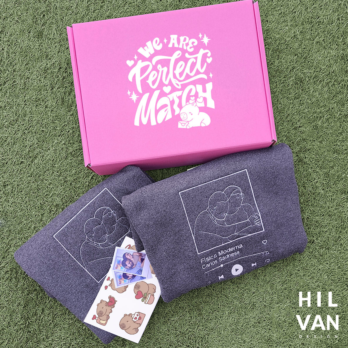2 Sudaderas bordadas con diseño de silueta y reproductor de música en el centro de la prenda.