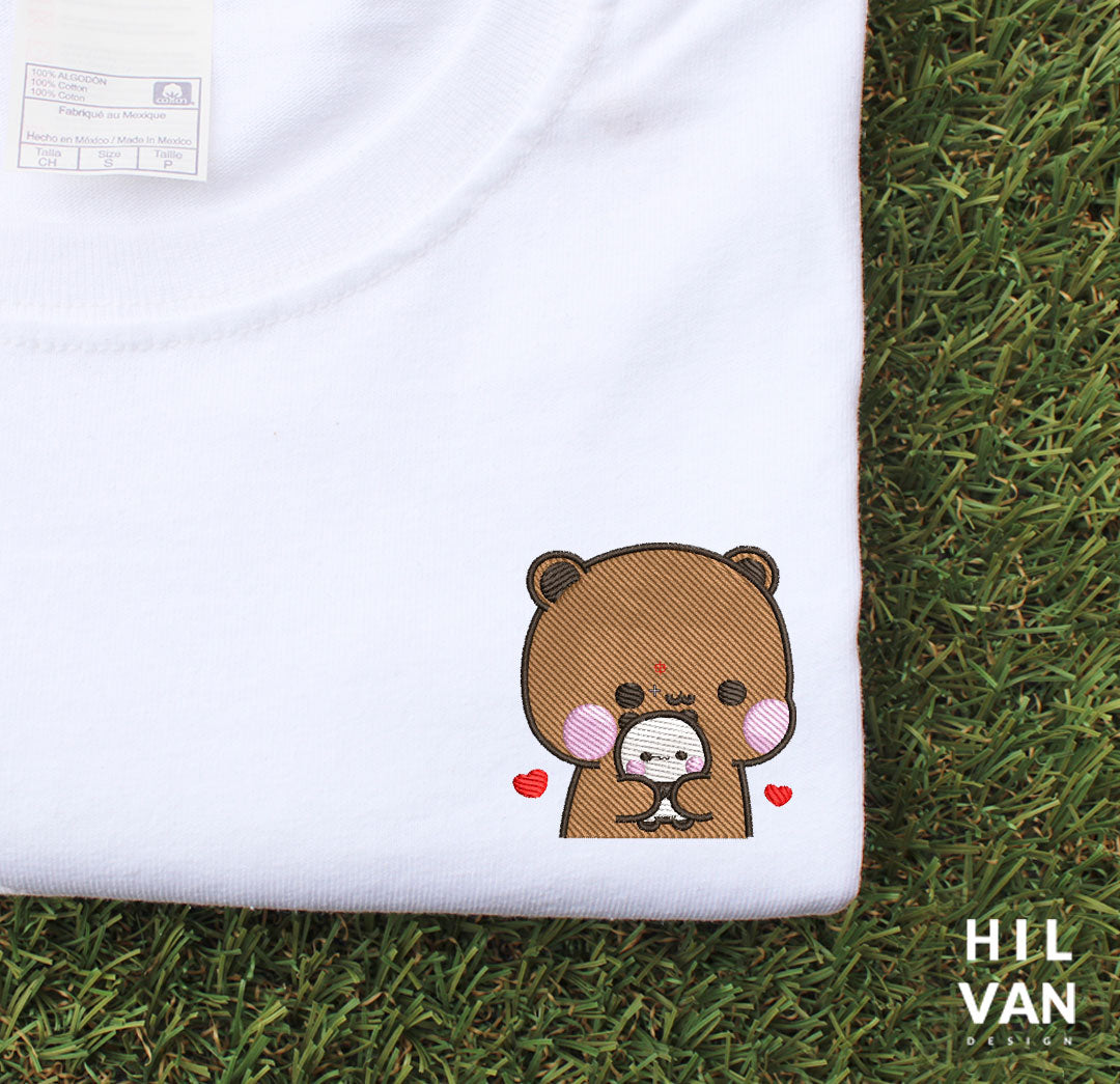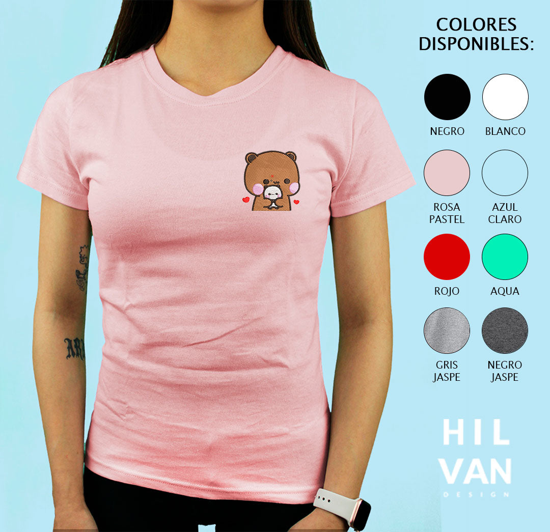 Playera manga corta, corte dama o caballero, cuello redondo, bordado en el lado derecho.