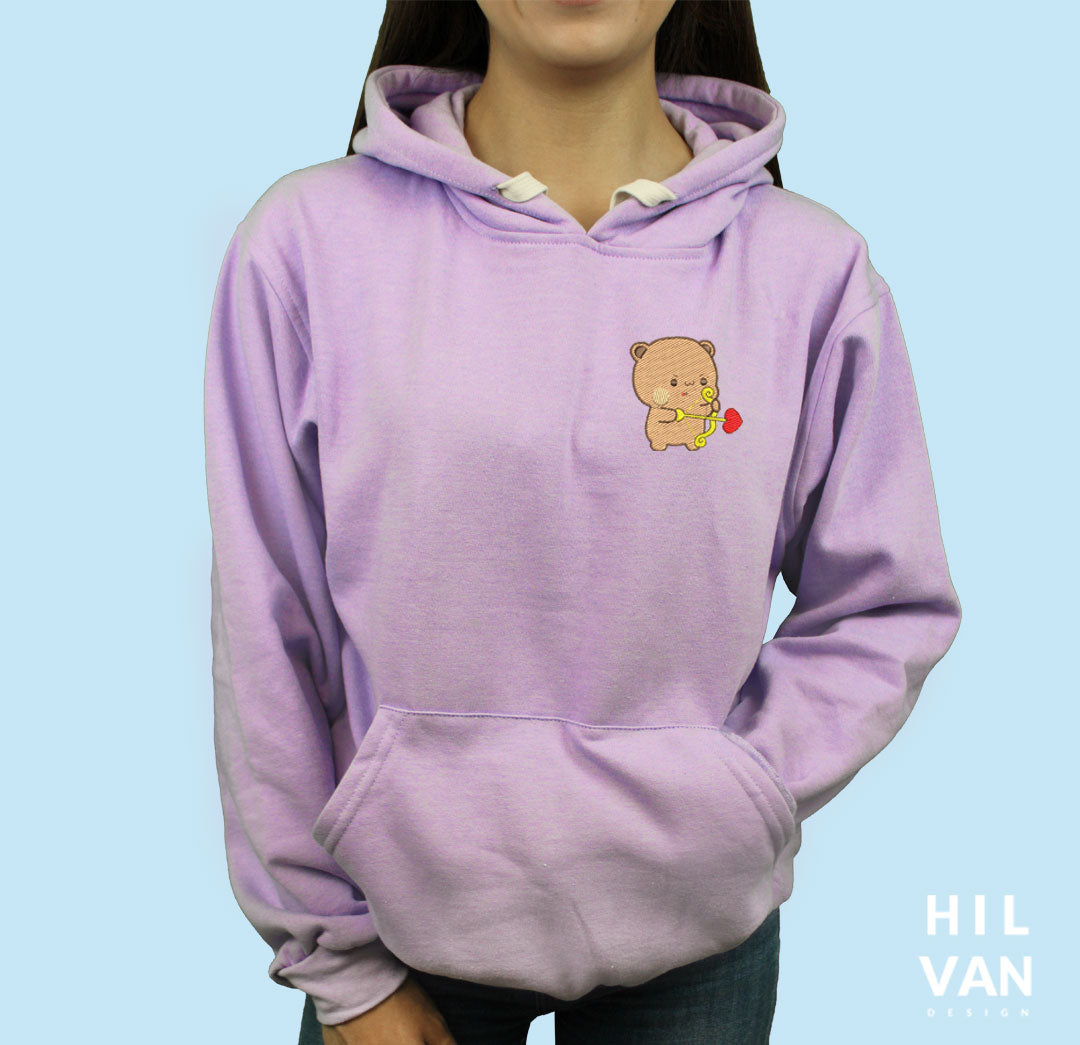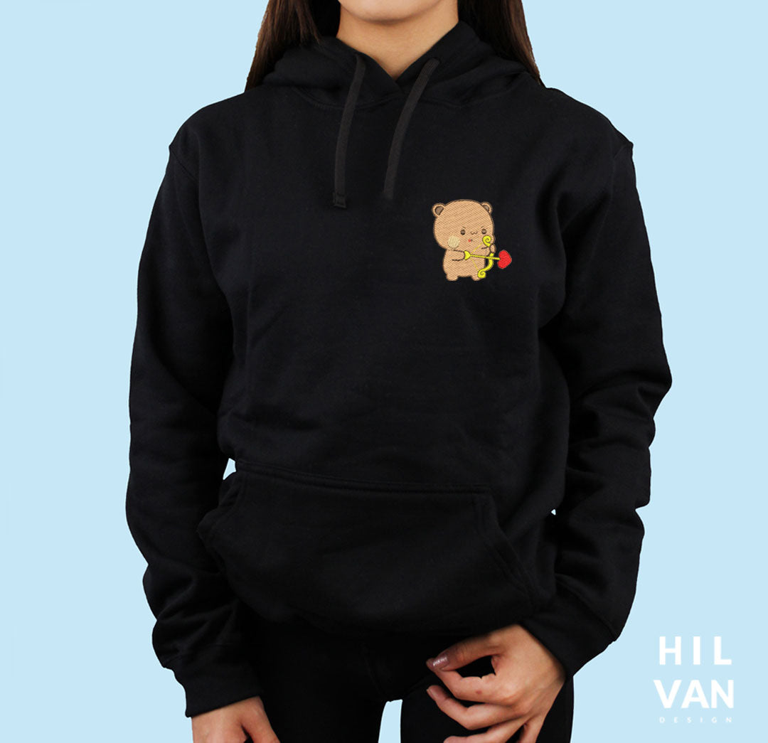 Sudadera de capucha y cangurera, cuello redondo, corte unisex, bordado en el lado izquierdo.